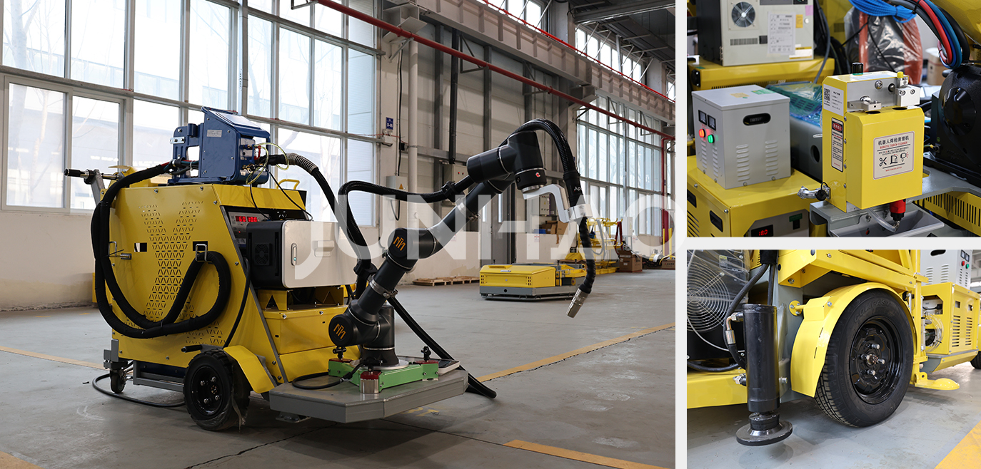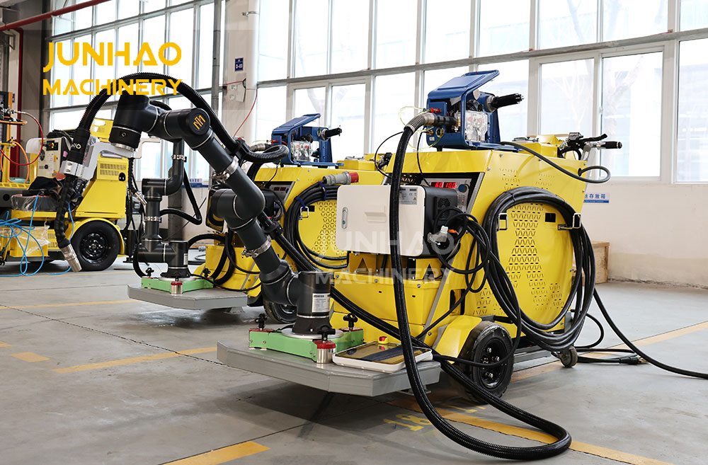 The self-propelled full-scenario heavy-component welding robot (Model WMM-10iD/8LHH500) is a mobile welding device tailored for large workpieces: It moves flexibly with a 10km/h travel speed, 15-30km winter/summer endurance, and a 4800mm minimum turning radius, eliminating fixed workstations to reduce handling costs for large workpieces; it supports full-position welding (horizontal, flat, vertical, overhead), with a maximum 3800mm horizontal width and 3725mm vertical height to cover multi-scenario needs of large workpieces; its ±0.03mm repeat positioning accuracy ensures weld quality and reduces rework losses; equipped with 26.8KW system power, 4 lithium batteries, and a 120W cooling water tank, it enables stable long-duration operation, while its 1780KG robust body suits heavy-load scenarios.