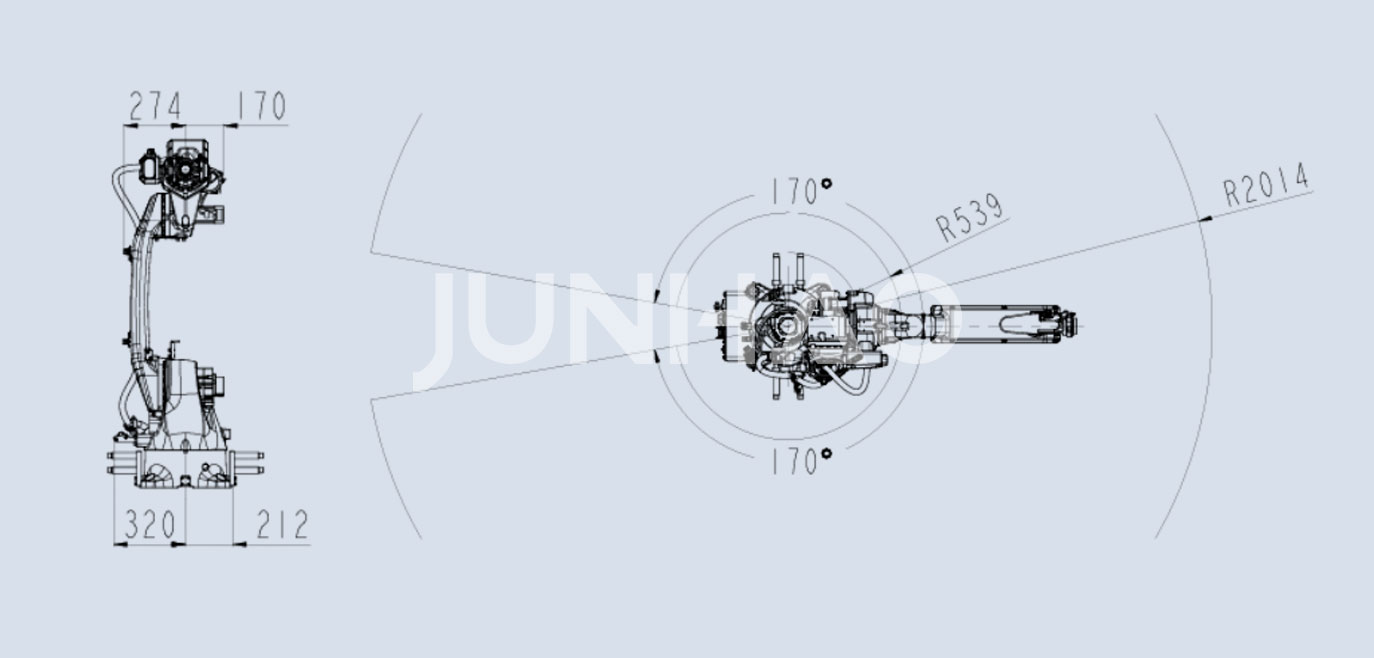 | Robot Body and Control System | he robot body uses the QJR6-2000H, and the control system adopts centralized control, with an internal programmable logic controller (PLC) to realize remote control and management of various devices. |